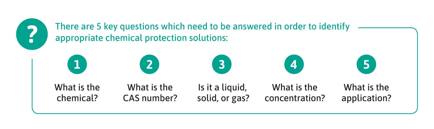 With over 60 million registered chemicals, finding the right chemical protective glove is not an easy task. Workers can be exposed to hazards in a variety of ways. To understand chemical exposure risks, it is important to know the potential means for contamination (such as vapor, spray, splash and immersion) and the route of exposure to the worker (inhalation or skin absorption).