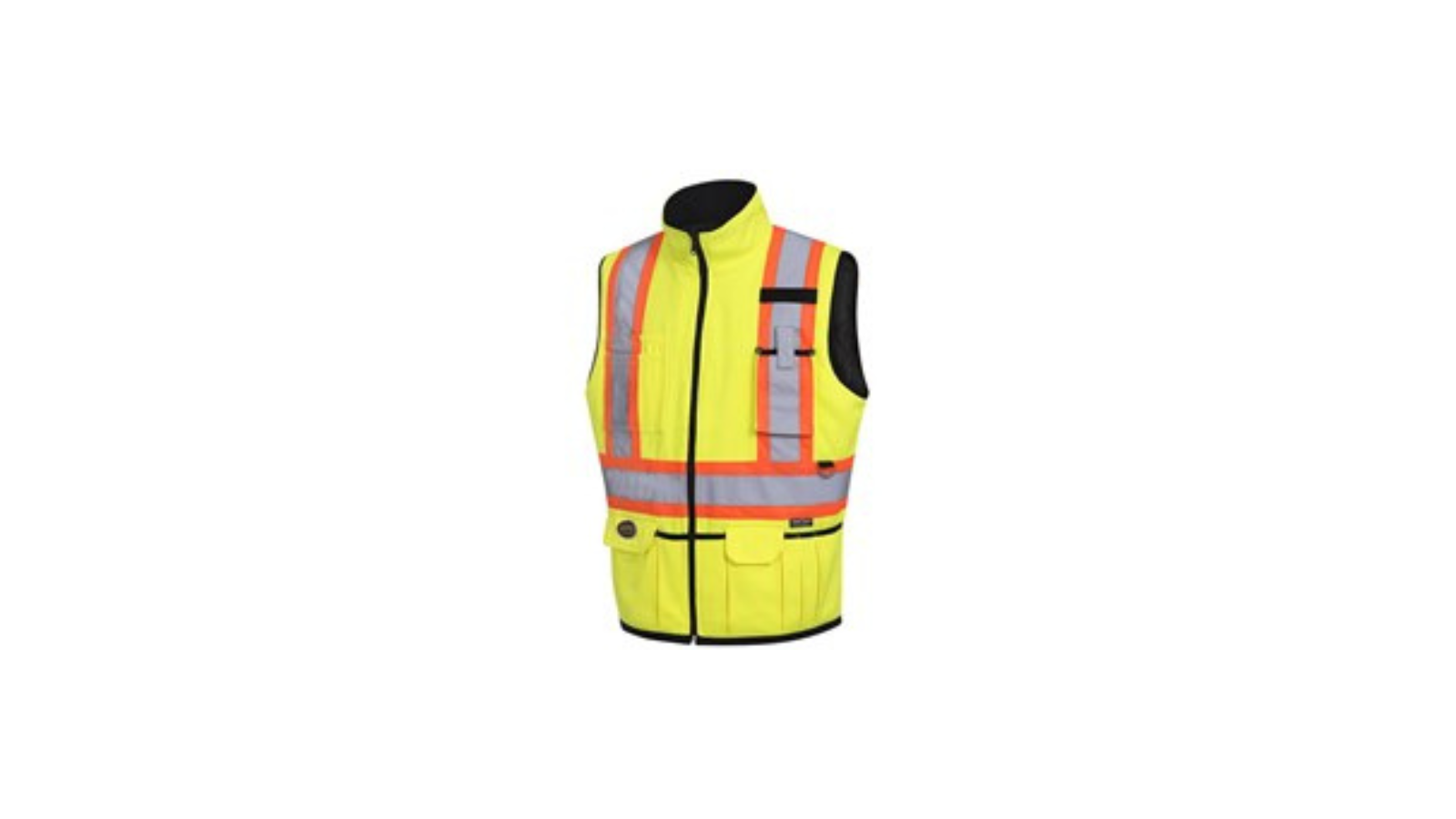 Durable 8.8 oz (300 GSM) 85/15 poly/cotton blend. CSA Z96-15 Class 2 level 2, ANSI/ ISEA 107-15 Class 2 Type P & R. Black high-denier polyester on reverse side. 100 g poly diamond quilted padding, soft rib collar and durable canvas hem binding.