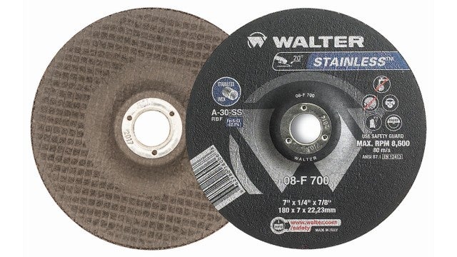 Walter Stainless Grinding Wheel 30 Grit 7" Type 27, Depressed Center 7/8"
