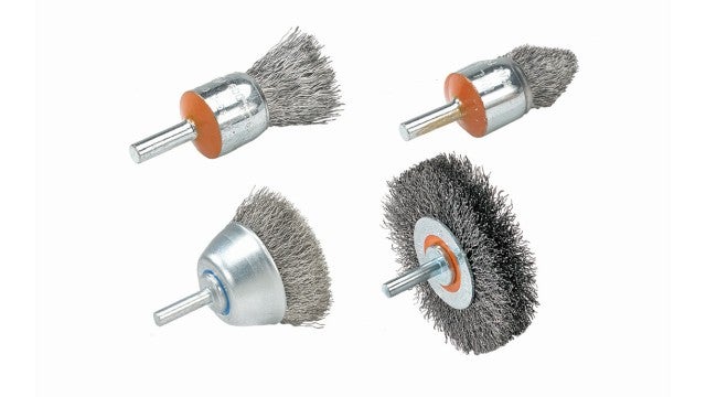 Walter Mounted Brush w/Crimped Wire Wheel Brush 1/4" Arbor, 3" D Stnlss Stl