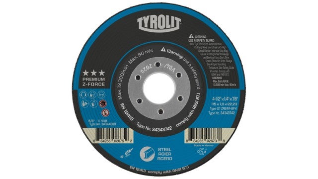 Tyrolit Z-Force Grinding Wheel 24 Grit 7 in Type 27 7/8 in